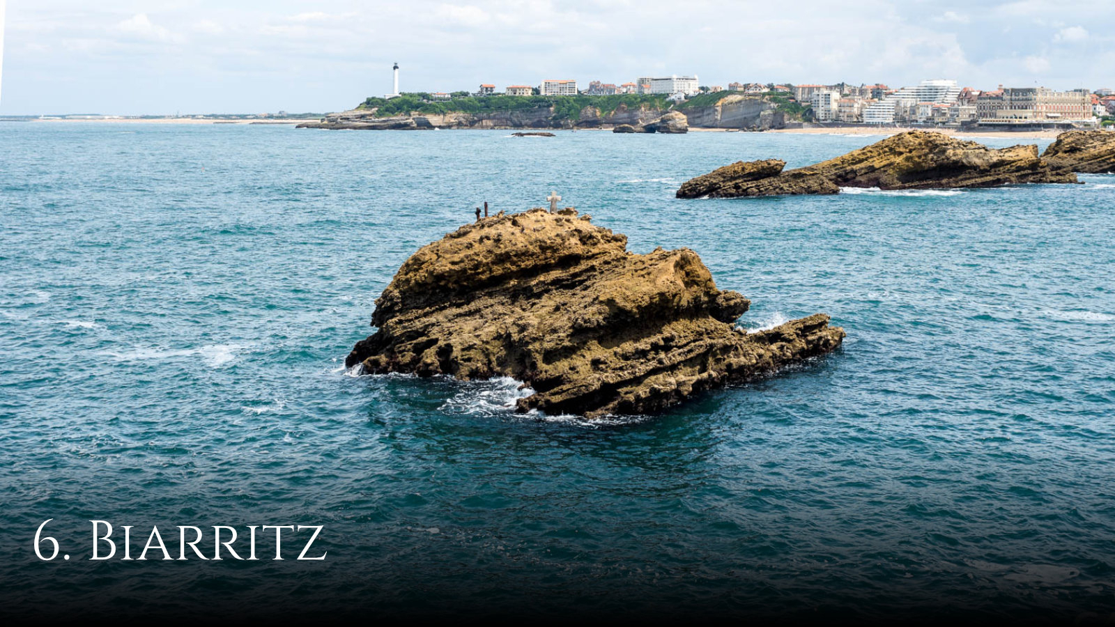 Formações rochosas como o Rocher de la Vierge, ligado à costa por uma ponte metálica associada à engenharia de Gustave Eiffel, proporcionam vistas espetaculares sobre o Golfo da Biscaia. A arquitetura Belle Époque da cidade, com cassinos e hotéis históricos, contrasta de forma marcante com a energia descontraída da cultura do surf.