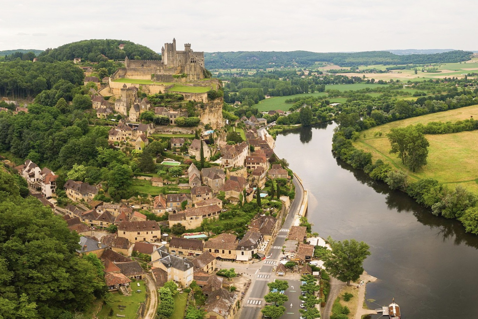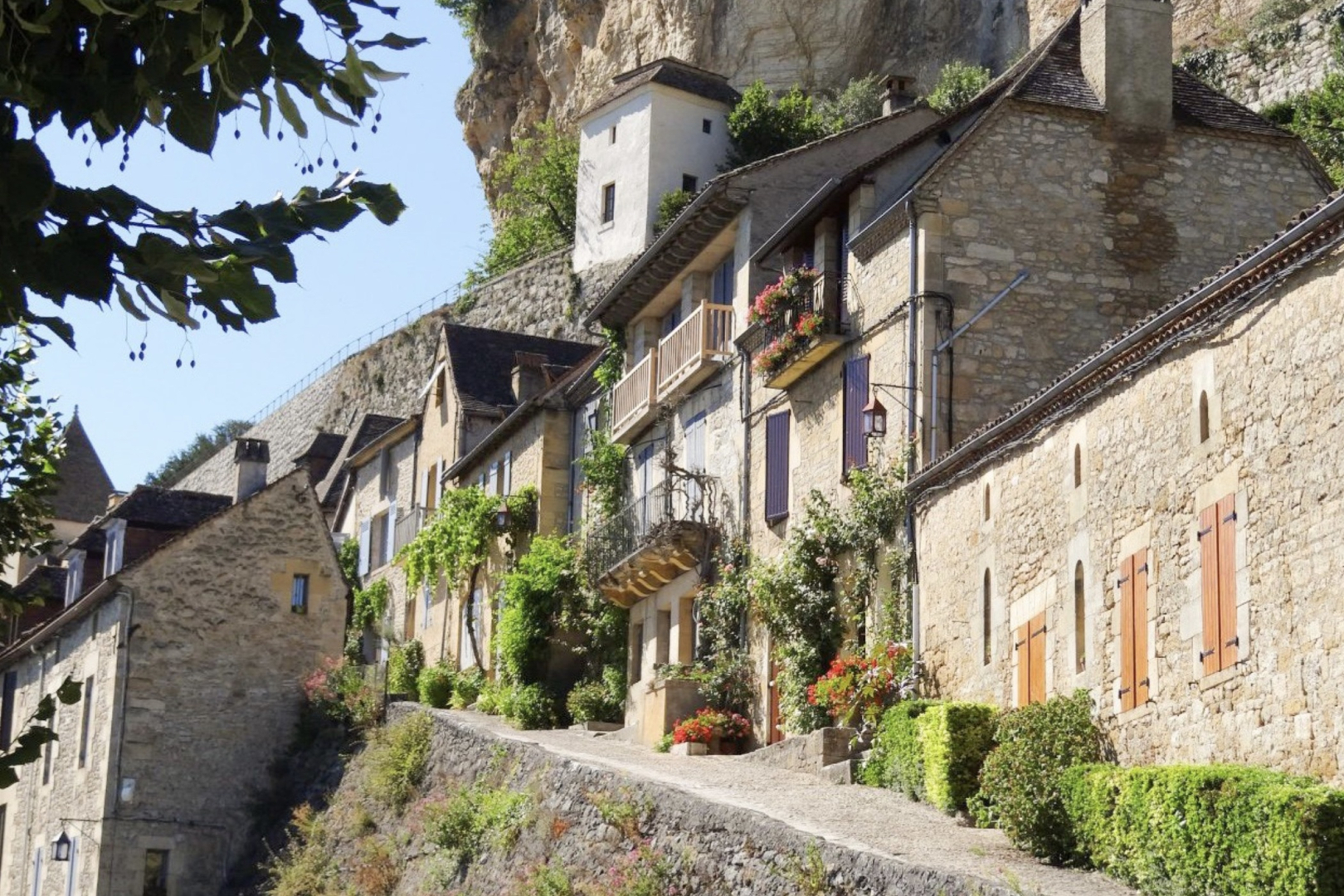 Caminhar por suas vielas é descobrir um cenário pitoresco a cada esquina: portais góticos, janelas com treliças, pequenas praças sombreadas por plátanos centenários. Aos pés da aldeia, o rio Dordogne corre sereno, refletindo em alguns momentos a silhueta do castelo, um quadro digno de cartão-postal.
