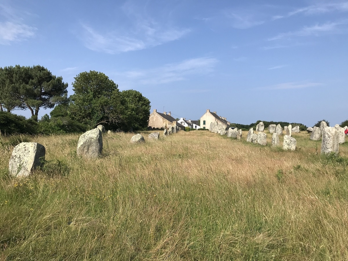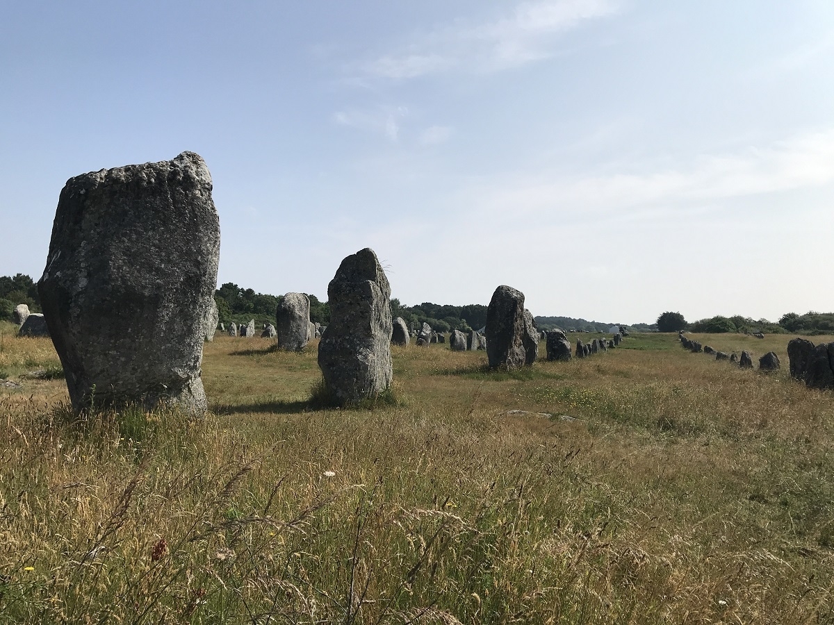 É nesse contexto que foram construidas várias linhas de megálitos chamado MENIRES (que em bretão significa PEDRA ERGUIDA) somando um total de quase 3000 pedras. As pedras têm tamanho variável até 4 metros de altura e foram instaladas de forma crescente, com espaçamento regular entre as pedras e entra as linhas paralelas mostrando um total domínio dos construtores sobre o projeto arquitetural. Mostra uma vontade clara de delimitar o espaço, mostrar o poder e marcar o território.